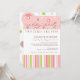Um design contemporâneo para uma futura mãe contemporânea. Coordenar padrões de listras e círculos sutis em cor-de-rosa pastel, ameixa, verde e marfim faz um convite moderno a um chá de fraldas quando vai ser o dobro da alegria - meninas gêmeas!