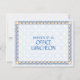 Um charmoso padrão gráfico de fundo em azul tropical mudo, realçado por uma fronteira contrastante em azul de cobalto e laranja de jaffa. Concebidos com convites complementares e artigos de papelaria, cartões e presentes adequados a qualquer ocasião empresarial ou empresarial.