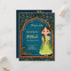 Convite de Mehndi / Sangeet com padrões indianos árabes de paisley em verde-teal.