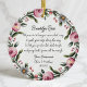 Um belo lembrete da promessa de andar ao seu lado com fé e amor. Este ornamento personalizado do batismo é projetado para os padrinhos doarem com coração. Cercado por uma coroa floral suave, apresenta o nome da criança, a data do batismo e uma promessa comovente e afável - um voto de guiar, erguer e rezar por todos os momentos da vida. O design é exibido em ambos os lados para um eterno, acabamento digno de exibição. Seja dotado a um batismo, batizando, ou dedicação, é uma manutenção significativa que reflete o amor e o compromisso que você fez com um precioso afilhado. Presentes que valem a pena guardar. Momentos que vale a pena lembrar.
