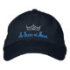 Apresentado em boné com o texto bordado em azul-turquesa e coroa em Íbolso-de-prata. Este boné tem apenas texto frontal. Retorno ajustável. Personalize este item e lembre-se de escolher a cor do chapéu, a cor do texto e a cor da coroa.