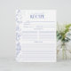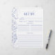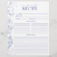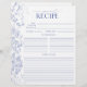 Projetada para acompanhar nosso Binder de Receita do Chá de panela correspondente, parte de um Chá de panela Suite correspondente, esta página de binder de receitas de tendências apresenta flores azuis vitorianas clássicas desenhadas à mão de flores de jardim, abelhas e borboletas, juntamente com caligrafia moderna feita à mão. Há muitas linhas para a receita, e a parte de trás corresponde à frente, para que cada convidado possa dar à noiva duas receitas. Ver suite aqui: https://www.zazzle.com/collections/french_blue_white_victorian_floral_bridal_shower-119265327422133417 Contacte o designer para produtos correspondentes. Copyright Surridge Design Co. para Elegant Invites, todos os direitos reservados.
