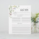 Projetada para acompanhar nosso Binder de Receita do Chá de panela correspondente, parte de um Chá de panela Suite correspondente, esta bonito receita apresenta tipografia bonito escrita com letra de mão, flores silvestres de verão com cor d'água, como ervilhas doces, tremoços, dragões, e mais, em tons brilhantes de rosa, lilás, lavanda, amarelos, azuis e delicadas folhas botânicas verdes e bordada em verde. Há muitas linhas para a receita, e a parte de trás corresponde à frente, para que cada convidado possa dar à noiva duas receitas. Uma margem também foi deixada na página para acomodar a margem. Veiw suite aqui: https://www.zazzle.com.au/collections/elegant_summer_wildflower_floral_bridal_shower-119362970052413009 Entre em contato com o designer para obter produtos correspondentes. Copyright Anastasia Surridge for Elegant Invites, todos os direitos reservados.