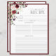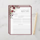 Projetada para acompanhar nosso Binder de Receita do Chá de panela correspondente, parte de um Chá de panela Suite correspondente, esta placa de receita bonito apresenta um buquê de flores rosas e pálidas e verde botânico, bordado em um vermelho-burguês rico (cuidadosamente digitalizado) e uma caligrafia bonito escrita escrita escrita à mão. Há muitas linhas para a receita, e a parte de trás corresponde à frente, para que cada convidado possa dar à noiva duas receitas. Uma margem também foi deixada na página para acomodar a margem. CLIQUE AQUI para coordenar o Binder de Receita: https://www.zazzle.com/collections/elegant_burgundy_floral_watercolor_bridal_shower-119280454460170395 Entre em contato com o designer para obter produtos correspondentes. Copyright Elegant Invites, todos os direitos reservados.