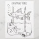 Cena submarina com estrelas-do-mar e cartoons de concha, arte de linha para a página do livro de coloração. Custom Text.