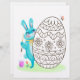 Um coelho azul-azul-fluffy fica pronto para pintar um ovo gigante de Páscoa.