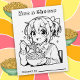 Menina de anime bonita comendo mac na página de colorir queijo. Página simples e fácil de colorir para crianças.