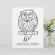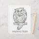 Colorindo página do livro. Cartoon de coruja sentado em um galho olhando para a frente. Custom Text.