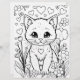 Um gato giro cercado por flores e corações de página para crianças ou adultos. Bonita para as crianças da escola, festas de aniversário ou só para colorir por diversão.