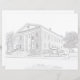 Edifício histórico em Benicia, Califórnia. Duas colunas de história na frente, árvores em ambos os lados do prédio. Use lápis cor, lápis coloridos ou tintas para colorir com o seu sentido artístico.