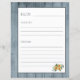Vintage angustiada, rústica empoeirada, folha de receitas de madeira azul modelo para o organizador de receitas de aglutinantes personalizados de livros de culinária da família, com um buquê de girassol amarelo e verde pintado à mão bonito.