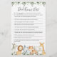 Os animais Safari com o tema pai de chá de fraldas conhecem o melhor cartão de jogo com a ilustração de animais safari com aquarelas e eucalipto garland com cor verde-d-água e uma elegante fonte com estilo manuscrito.