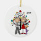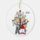 Um enfeite familiar bonitinho para os feriados com uma árvore, um pai, mãe e uma menina.