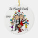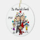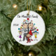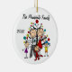 Uma cerâmica redonda bonito guardando o enfeite de Natal apresenta uma família de figuras de palitos incluindo um pai, mãe, menina, garoto e criança em frente a uma árvore de Natal decorada com áreas que você pode personalizar com seu nome de família e o ano atual! Este adorável enfeite de férias faz um presente de excelente para a jovem família comemorar um ano especial!