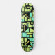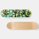 Os gatos pretos andam de skate com fundo verde e amarelo.
