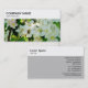Um modelo de cartão de negócios com um painel superior branco de 0,6" (15,24 mm) e espaço para uma foto ou imagem abaixo. Disponível com uma variedade de imagens atraentes ou você pode adicionar sua própria imagem. Nome da empresa e Tipo/cotação comercial no painel superior frontal posicionado à esquerda. O mesmo layout básico é repetido no verso da placa, mas sem a foto. O nome e o cargo estão no painel superior à esquerda, da mesma forma que os detalhes na parte frontal da placa. Os detalhes de Endereço, Telefonia, Web e e-mail estão na área inferior alinhada à direita na área inferior. A área inferior tem um plano de fundo de cor plano que também pode ser personalizado. Este modelo pode ser usado como está ou pode ser mais personalizado. Além de oferecer a oportunidade de exibir fotos de seus produtos ou imagens relevantes à sua empresa, a área de fotos é particularmente adequada a uma variedade de imagens decorativas, fotos da natureza, por exemplo, detalhes de flores e árvores ou mesmo desenhos totalmente abstratos e padrões decorativos, etc. O modelo também oferece muito espaço para adicionar logotipos adicionais, por exemplo, no canto superior direito dos painéis superiores.