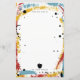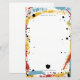 Traços vermelhos, amarelos e azuis com decapante de tinta preta, texto e maçã. Personalizar com o nome do professor