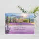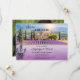 Casamento romântico Salve o Cartão de Data com uma pintura de fazenda de lavanda no pôr do sol. Na parte de trás está o espaço para a sua própria foto. Um modelo de código QR é adicionado para sua conveniência. Bonita para um casamento temático de lavanda ou uma celebração do lado do país de estilo francês.