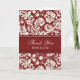 Cartão de agradecimento para os pais da noiva ou do noivo no dia do seu casamento. Elegante e sofisticado com um clássico padrão floral damasco vintage em vermelho sofisticado e creme esbranquiçado, a maneira perfeita de agradecer aos seus pais por todo o apoio no dia do seu casamento.