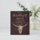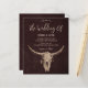 Convide seus convidados para seu dia especial com os convites de casamento verticais para o touro de rodeio de fazenda ocidental do país marrom. Lindos antecedentes de textura rústica para personalizar suas informações. Imagem copyright Marg Seregelyi Fotografia.
