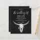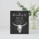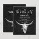 Convide seus hóspedes para o seu dia especial com estes convites de casamento para o orçamento vertical de rodeio de touro de fazenda ocidental, preto e branco. Lindos antecedentes de textura rústica para personalizar suas informações. Imagem copyright Marg Seregelyi Fotografia.