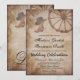 Botas de cowboy ocidental rustic country e bolsas e convites para casamentos de rodas de vagão. Este anúncio de casamento marrom afligido contém botas de vaqueiro, surras, chapéu de vaqueiro e design de roda de vagão. Estas são excelentes para casamentos no oeste do país. Basta editar a modelo para o seu próprio casamento.