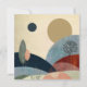 Uma abstrato de paisagem de rolagem de colinas texturizadas com árvores e plantas em cores ousadas de vermelho, laranja, bege, verde e bronzeado.