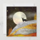 design de paisagem abstrato em tons vibrantes de prata, ouro e vermelho com um nascer de lua, estrelas e veado.