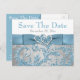 Defina o tom do seu casamento de Natal ou de inverno com este cartão-postal de casamento "save the date" com padrão de damasco floral em brilho FAUX azul gelo e cinza prateado, elegante e luxuoso, apesar de barato, que tem um fundo de flocos de neve brancos e uma fita e laço azul aço IMPRESSOS com um par de jóias de diamante e corações entrelaçados com brilho azul FAUX que combina com o convite de casamento mostrado abaixo. Seria perfeito para um tema de winter wonderland ou para um casamento de Natal ou Ano Novo. ***POR FAVOR, OBSERVE que não há elementos em relevo neste convite. Tudo é impresso plano. ***POR FAVOR, OBSERVE que se você alterar as fontes ou o tamanho das fontes, isso pode alterar a impressão do seu cartão. Ele será impresso da forma como você vê no seu monitor, então se você tiver problemas de alinhamento ou tamanho, por favor entre em contato comigo para obter ajuda ANTES de fazer o pedido. Eu não verei o seu cartão uma vez que você o encomendar e a Zazzle NÃO editará nada (erros de digitação, alinhamento, etc.). Se você precisar de assistência ou gostaria