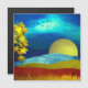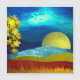 Um belo design de paisagem abstrato com um céu único que se assemelha a ondulações em líquido e uma lua, montanhas e uma árvore ouro.