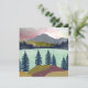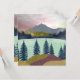 Esta linda paisagem de abstrato mostra uma cena de montanha com um lago e um céu multicolorido em tons de vermelho, ciano, azul, amarelo e ouro.