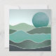 Esta paisagem de fantasia está em lindas camadas texturizadas e tons de turquesa e aqua com sol e colinas e montanhas.
