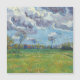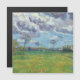 Paisagem sob um céu tempestuoso. Vincent van Gogh. Uma bela paisagem de verão. Tempestade no campo. Grande piso verde com tsetami vermelho. Há árvores no fundo. As nuvens estão correndo pelo céu azul. Reprodução de famosas imagens de arte no dominio público.