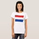 A frente desta camiseta exibe corajosamente a bandeira holandesa com as suas bandas distintivas, vermelhas, brancas e azuis, horizontais. Isto é combinado atrás por um mapa atrativo dos Países Baixos.
