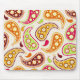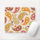Um mousepad que caracteriza um rosa, um verde, um ouro, uma laranja, e um teste padrão de Borgonha paisley.