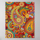 Este impressão de padrão paisley colorido é cheio de cores brilhantes do vermelho azul verde-amarelo alaranjado. Vai iluminar qualquer quarto.