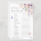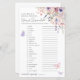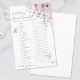Uma Vida de Borboletas Chá de panela Jogo do Word Scramble. Adicione uma atividade divertida e caprichosa ao seu chá de panela com este jogo de palavras encantador, perfeito para uma celebração temática "A Lifetime of Butterflies". Os convidados podem tentar desfazer uma lista de palavras relacionadas a casamento e amor, escrevendo suas respostas nos espaços fornecidos. O design apresenta flores silvestres de aquarela delicadas, dispostas no canto superior direito, com borboletas roxas e cor-de-rosa fluindo graciosamente ao redor do jogo. A paleta de cores inclui pincéis suaves, rosa empoeirado, lilás, lavanda, violeta e verduras frescas para um olhar sonhento e romântico. O texto do jogo é exibido em uma mistura de um script elegante manuscrito e fontes serif limpas, fazer-o na moda e fácil de ler. Totalmente personalizável, você pode editar as palavras embaralhadas, a chave de resposta, as fontes e as cores para corresponder ao tema do seu chá de panela. Esta atividade adiciona um toque doce e brincalhão para celebrar a futura noiva.