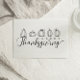 Cartão de saudação de ação de graças com palavras "Feliz Dia de Ação de Graças" e abóboras desenhadas à mão. Adicione sua própria mensagem ao fundo.