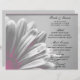 Personalize o bonito Menu de Destaques Florais Rosa e Cinza para anunciar os detalhes da refeição que você servirá no almoço do chá de panela, postar o brunch do casamento ou o janto de recepção do casamento. Este elegante cardápio nupcial floreado personalizado apresenta uma fotografia botânica branca e preta digitalmente melhorada de uma flor margarida com realces de rosa claro adicionados e um fundo de cinza prateada.