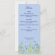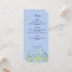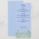Um cartão azul pálido de cardápio de casamento que me esqueça agora das flores.