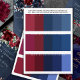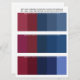 Três paletas de cor de joias de marinho burgundy com tom de noiva, apresentando rubi, granada, merlot, marinho, safira, azul de córnea em um cartão que você pode carregar com você fazer que é fácil comparar cores e melhorar o fluxo de cores e a continuidade ao selecionar seus materiais e suprimentos para o seu casamento.