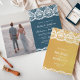 Amaze seus convidados com este elegante convite de casamento dobrado com lindos espaços brancos escalpados em um fundo azul empoeirado. Basta adicionar os detalhes do seu evento neste modelo fácil de usar e enfeitar este cartão com a sua foto favorita para torná-lo um convite único.