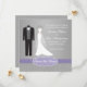 O vestido branco de casamento e o smoking num fundo de cinza junto com a cor damasco Salve o Convite de Data.