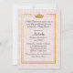 Bonito convite para chá de fraldas chic feito em um fundo com padrão pálido de pincel, com gráficos de um quadro de tom de ouro, com uma coroa no topo. Personalize todos os campos de texto para o evento do seu chá de fraldas.