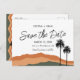Guarde a data para o casamento moderno do deserto dos Primaveras de Palma. Convite de correspondência disponível. Características do bronzeado e do deserto de oliveira, montanhas e palmeiras.