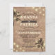 Palm Tree Beach Casais Invtions - apresenta um fundo impresso vintage com luzes de cordas, palmeiras e elementos decorativos de texto. Consulte os produtos correspondentes neste design sob a coleção encontrada nesta página.