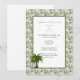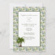 Um belo quadro das Folhas de Palma Verde, Rosa e Teal com um contorno verde escuro e texto verde para o seu casamento tropical numa ilha ao sol