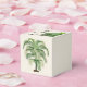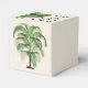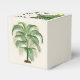 Caixas de favores bonitas decoradas com frondas de palma e palmeiras. Cor erguida com script preto para personalizar no topo. Para um casamento, convidados de obrigado para vir ou usar para qualquer ocasião com qualquer texto.