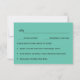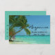 Personalize este RSVP com os detalhes do seu casamento. Esta design é uma pintura aquarela de uma cena de praia com palmeiras, arbustos floridos e oceanos em belos tons de azul. Personalize este RSVP com suas informações de casamento. A parte de trás tem espaço para mais detalhes. A cor de fundo é uma espuma do mar verde, você pode alterar a cor ou removê-la clicando no botão Personalizar. Em seguida, escolha Editar, Fundo. Uma paleta de cores será exibida. Depois de escolher outra cor, você deve ver as mudanças imediatamente. Para salvar suas alterações, clique em Concluído.