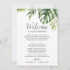 Este itinerário de cartas de boas-vindas da palma tropical selvagem e cartas de mapa são perfeitos para um saco de boas-vindas ao casamento de destino. A design apresenta um conjunto exótico de folhas de palmeiras de banana-d'água verde, samambaias, folhagem, plantas botânicas e verde para uma sensação tropical de verão. A frente do cartão apresenta uma carta e um itinerário bem-vindos. Inclua um mapa do seu recurso com locais importantes anotados na parte traseira da placa.